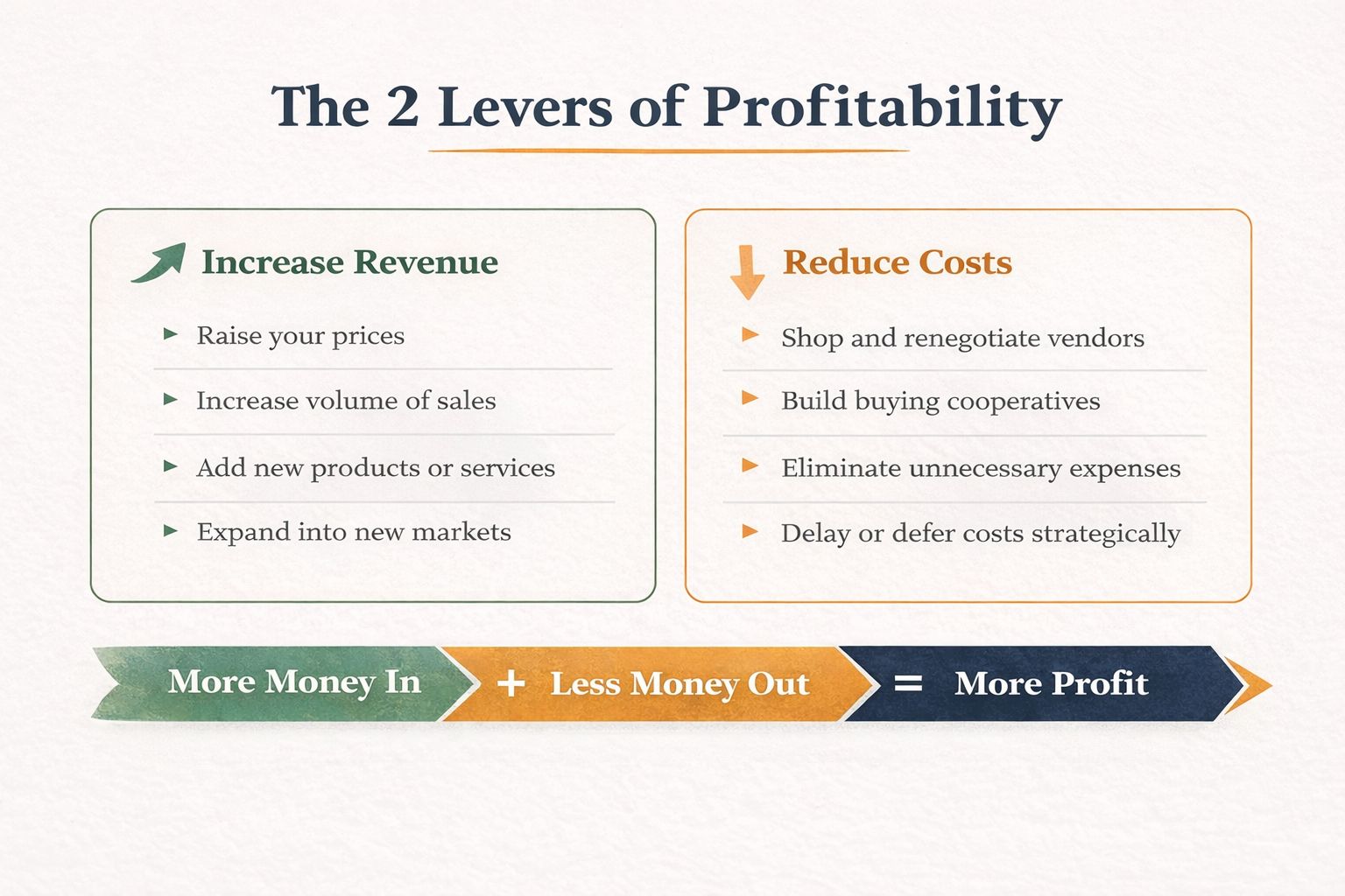 There are a million ways to work each lever. Pricing strategy, volume growth, vendor negotiations, expense audits. It can get complicated fast. But the framework never changes. When a client walks in and says they need more money, the first question I ask is: which lever are we pulling?